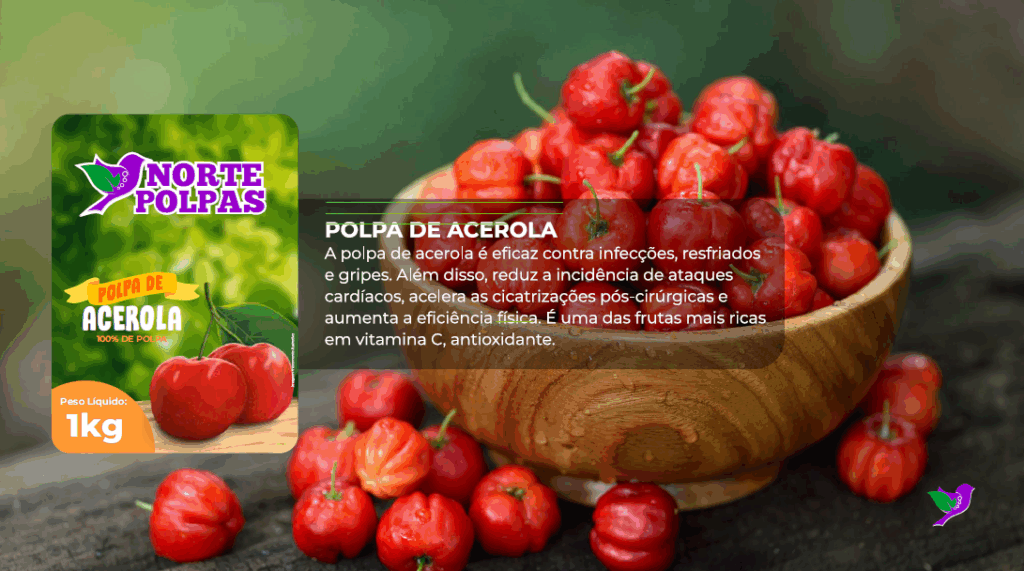 A polpa de acerola é eficaz contra infecções, resfriados e gripes. Além disso, reduz a incidência de ataques cardíacos, acelera as cicatrizações pós-cirúrgicas e aumenta a eficiência física. É uma das frutas mais ricas em vitamina C, antioxidante.